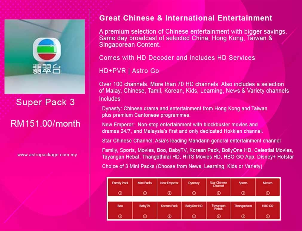Experience broadband speeds up to 30X faster than ADSL or 3G. Choose the Family Pack and bring Astro to your living room for as low as RM 4235. MAXIS IPTV Pre-launch Promotion.